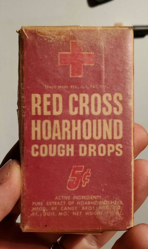 Title (ebay affiliate link): Antique Red Cross Cough drops Hoarhound Medicine NOS Medical Vintage
