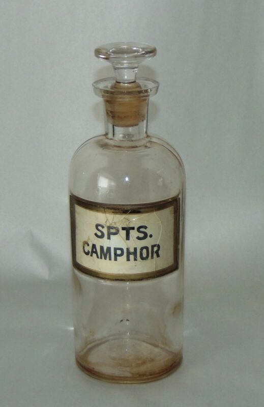 Title (ebay affiliate link): ANTIQUE PHARMACY Bottle APOTHECARY Glass GROUND STOPPER Spritis Of Camphor