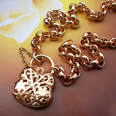 Title (ebay affiliate link): 50cm 9ct Yellow Gold GF Padlock Belcher Solid Necklace