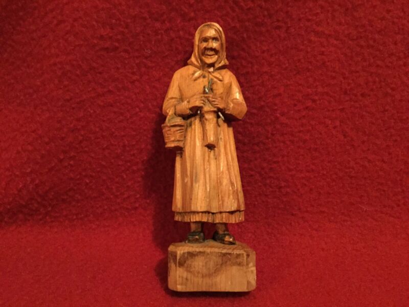 Title (ebay affiliate link): Vintage Hand Carved Wood “Knitting Lady” figure approx. 5"