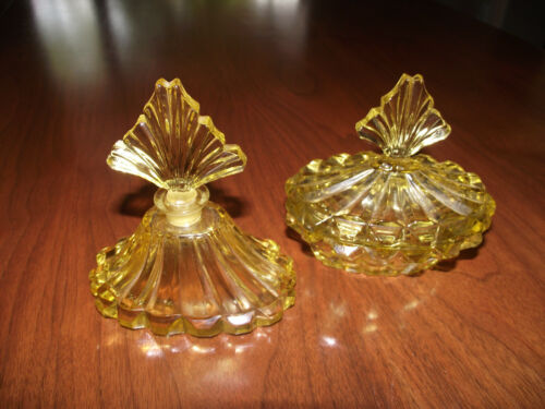 Title (ebay affiliate link): ANTIQUE CZECH MOLDED YELLOW GLASS PERFUME BOTTLE & MATCHING TRINKET JEWELRY BOX