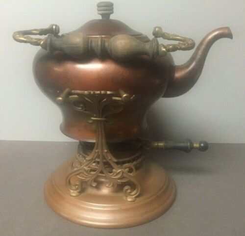 Title (ebay affiliate link): Antique Pure Copper Tea Pot on Stand with Burner, Wooden Handle & Knob C. 1910