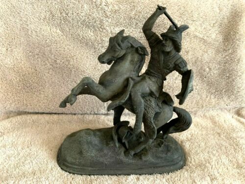 Title (ebay affiliate link): Antique Medieval Sculpture Rearing Horse w/Knight Norseman Spelter Zinc - MARKED