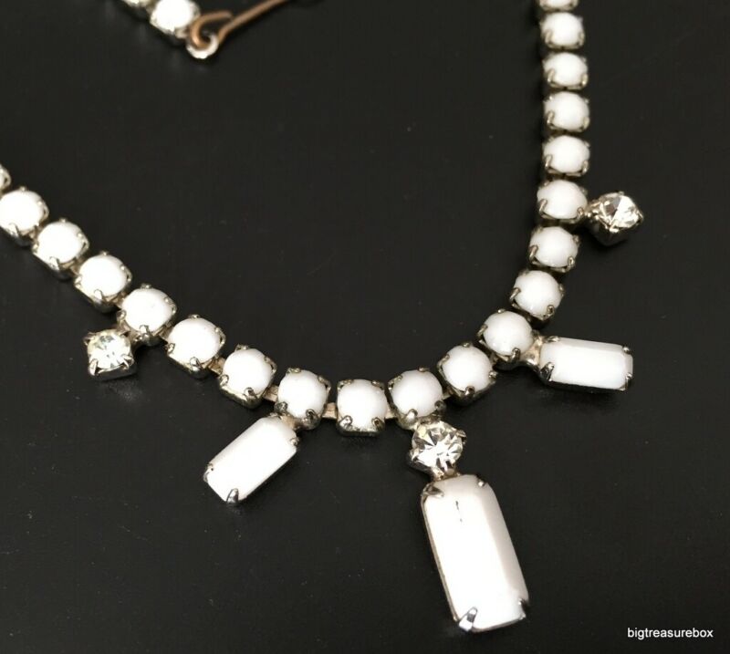 Title (ebay affiliate link): Vintage Necklace White Milk Glass Rhinestone Chain Choker Jewelry lot p