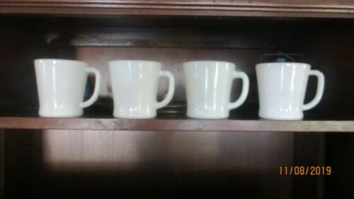 Title (ebay affiliate link): Set Of 4 Fire King White Milk Glass Coffee Mugs D Handles VGC