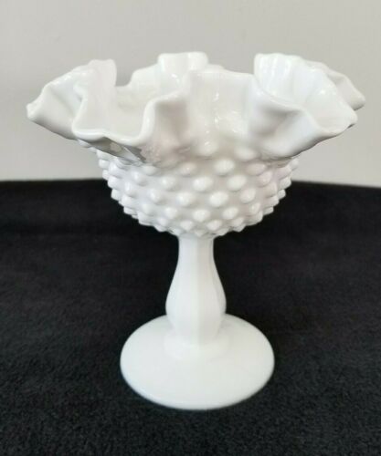 Title (ebay affiliate link): Vintage Fenton Hobnail White Milk Glass 6" Ruffled Pedestal Candy Dish