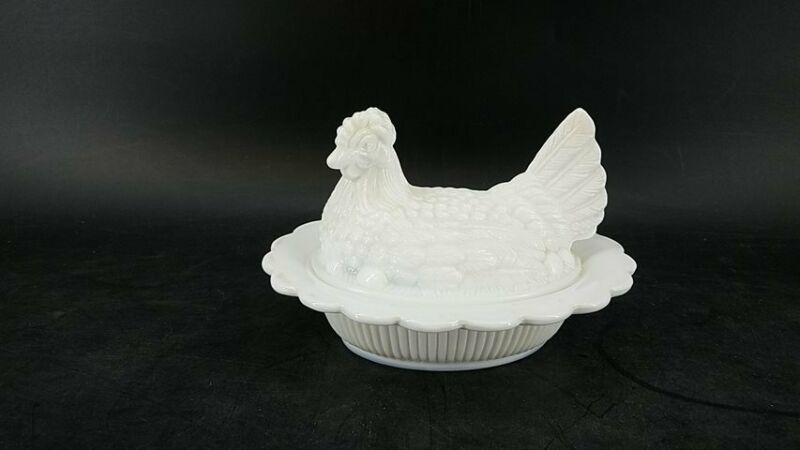 Unmarked Hen on Nest Milk Glass Candy Dish