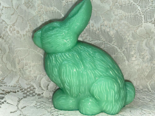 Jadeite green milk glass bunny rabbit paperweight Easter egg jade holiday opaque