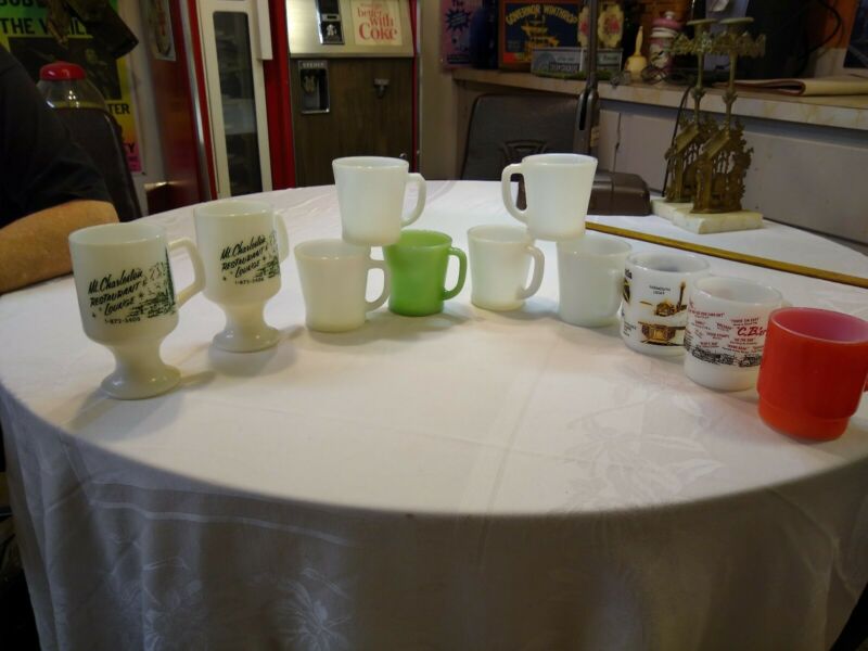 Vtg Lot Milk Glass Cup Mug Fire King mid century