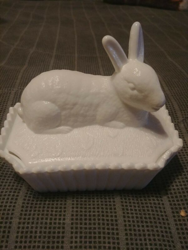 Vintage Westmoreland Milk Glass Bunny Covered Candy Dish