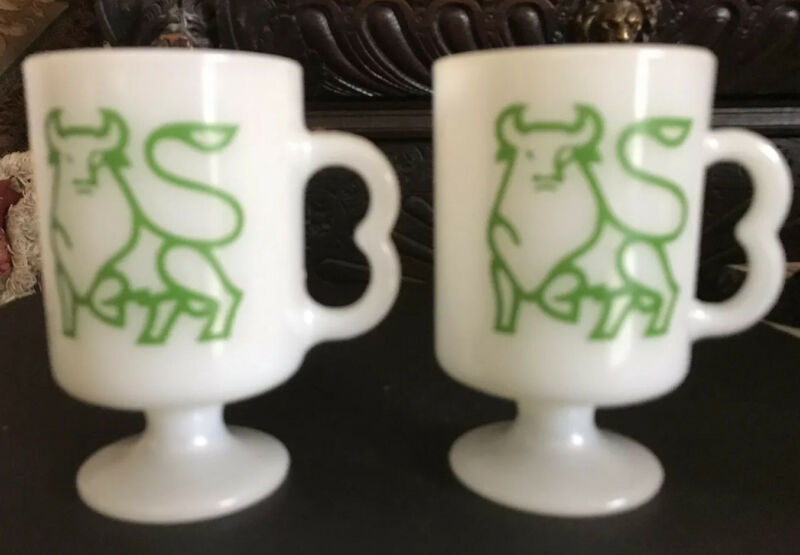 Title (ebay affiliate link): MERRILL LYNCH Iconic Merrill Bull Logo Vintage Milk Glass Coffee Cup Mug Pair