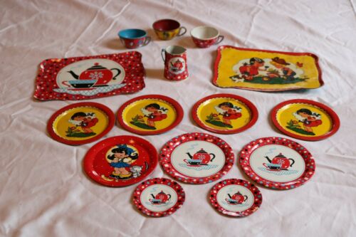 Title (ebay affiliate link): Vintage Ohio Art 15 pc Children''s Tin Dishes Mixed lot, Tray, Plates, Cups