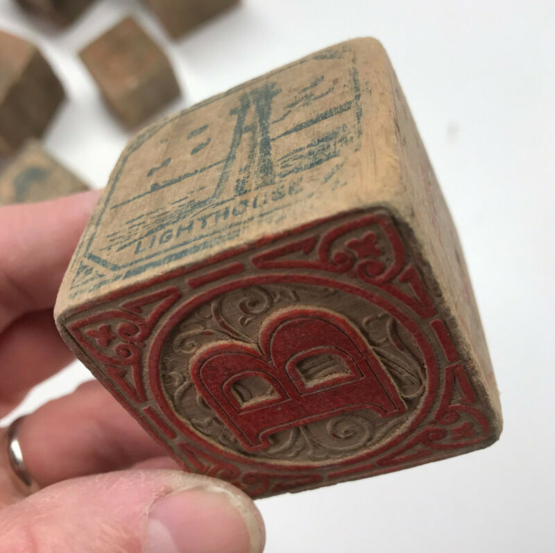 Title (ebay affiliate link): Vintage Wooden Blocks Alphabet ABCs & Pictures, Lot of 13, mixed size
