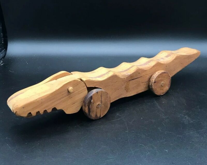 Title (ebay affiliate link): Vtg Hand Carved Hand Made Wooden Alligator Crocodile Wheeled Toy Movable Mouth