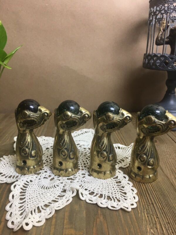 Title (ebay affiliate link): VINTAGE Brass CAST IRON Glass Ball Claw Feet Set of 4