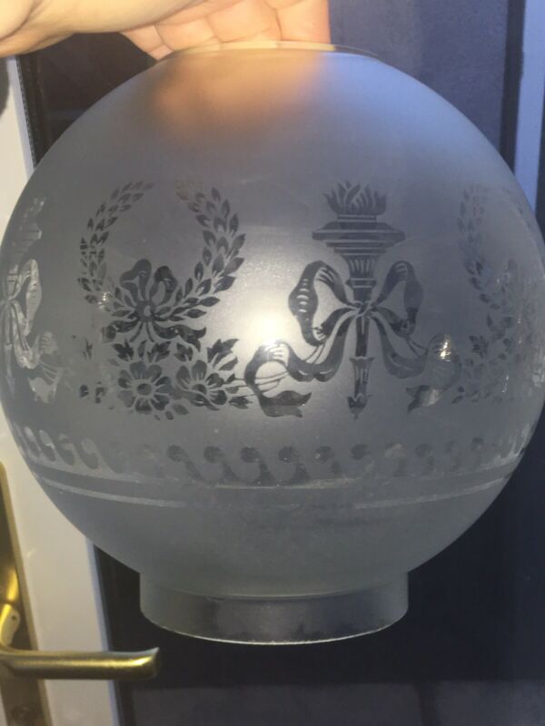 Antique Victorian Acid Etched Glass Duplex Oil Lamp Shade Globe No Reserve