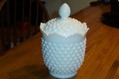 FENTON MILK GLASS COVERED CANDY DISH JAR HOBNAIL WHITE