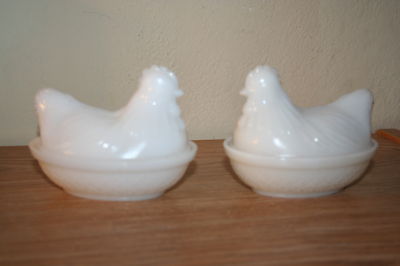 2 Small Hazel Atlas White Milk Glass Hen on Nest Dishes