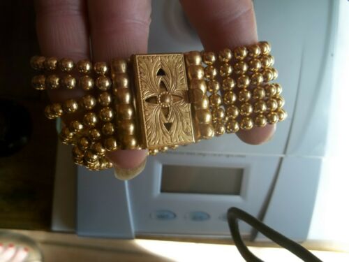 Title (ebay affiliate link): Antique Bangle Bracelet Gold Tone Beads 7 inch around