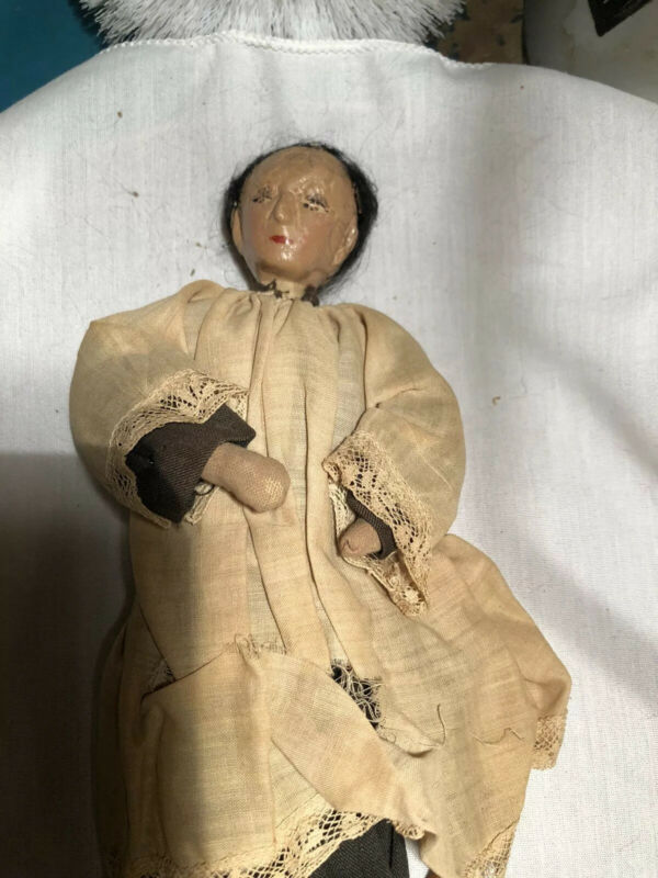Antique Asian Monk Figurine Doll Head China Hands Feet Wire Cloth Rare