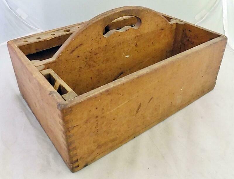 Title (ebay affiliate link): Antique Wooden Carpenter Tool Box Tote Handmade Primitive Barn Find