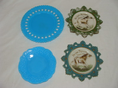 4 Antique Milk Glass Souvenir Plate Blue Missouri Lot