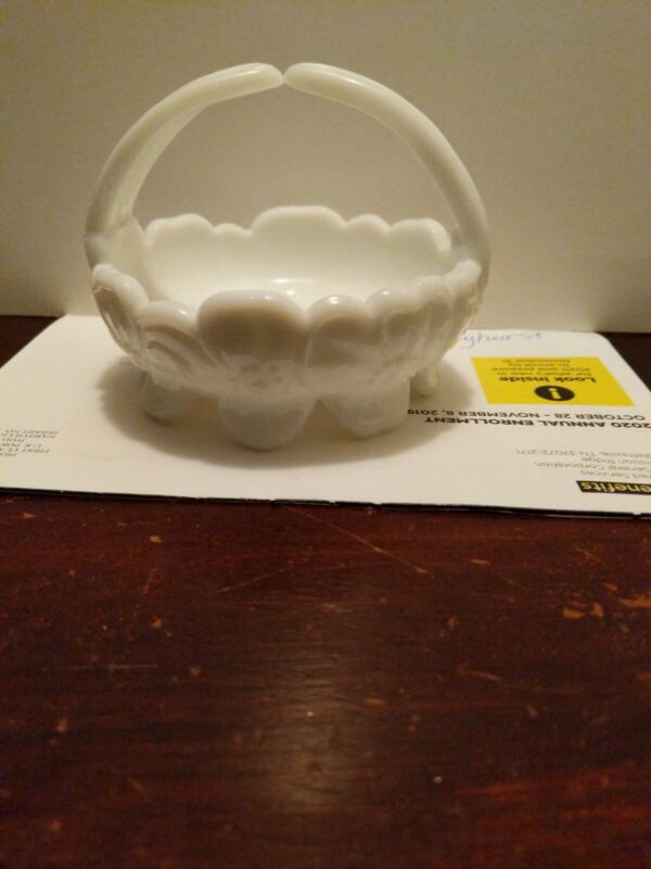 Westmoreland White Milk Glass Split Handle Basket Dogwood/Pansy Pattern Wedding
