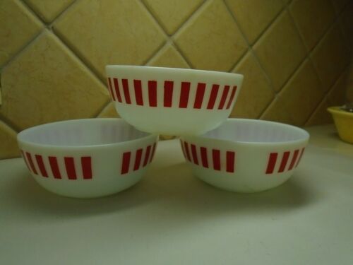 3 Vintage Red & White Milk Glass Cereal Bowls