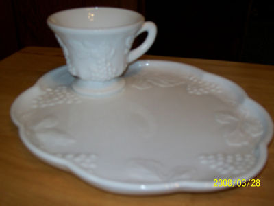 Set of 8 Vintage Milk Glass Sandwich Plates w/Cups*NICE