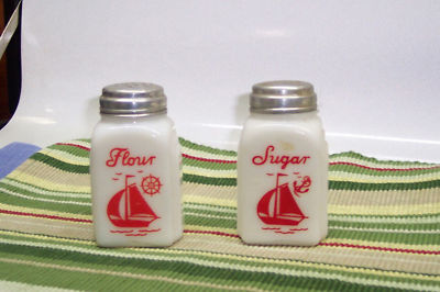 Flour & Sugar Shakers Milk Glass Vintage Excl Cond NR