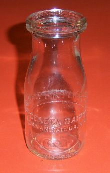 SENECA DIARY GLASS MILK BOTTLE / CANANDAIGUA, N. Y.