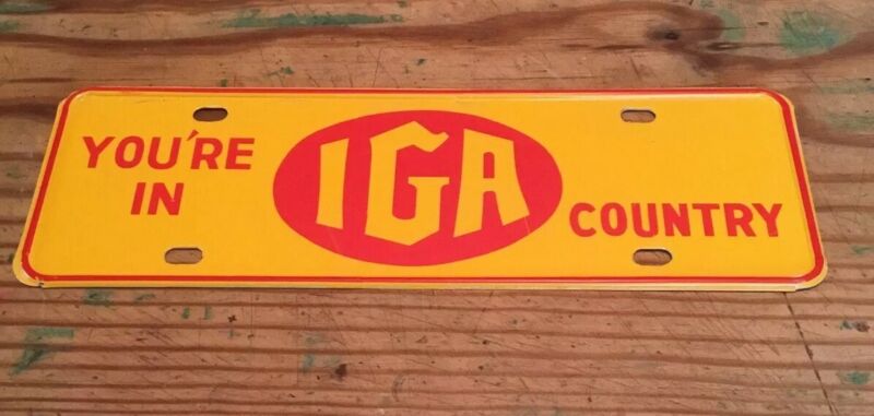 NOS Advertising IGA Shopping Cart Sign License Plate Advertising