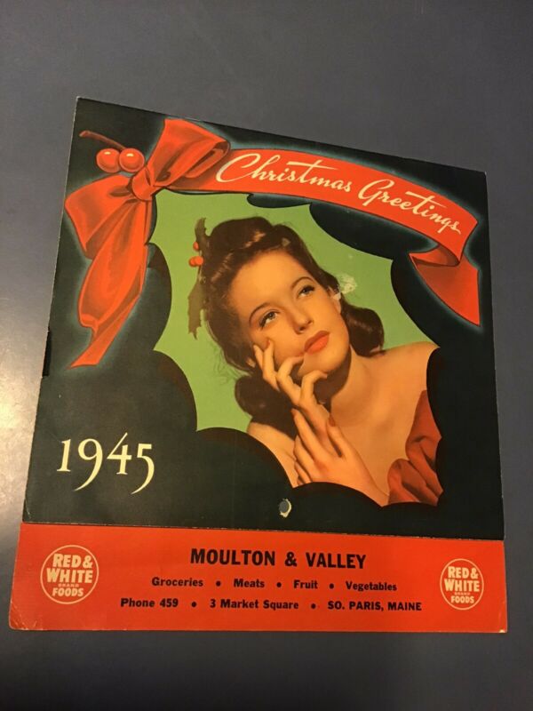 Title (ebay affiliate link): Advertising Calendar 1945 Moulton & Valley, Red & White Store, So. Paris, Maine