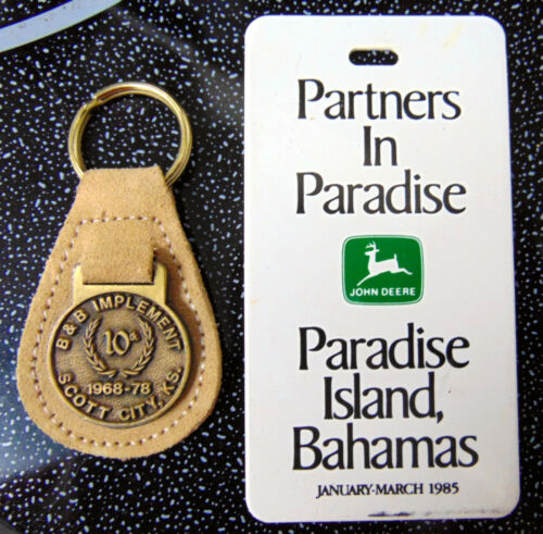 vInTaGe JOHN DEERE ADVERTISING KEY CHAIN & JOHN DEERE TRAVEL ID TAG