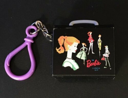 Title (ebay affiliate link): 1999 Barbie Key Chain Black Lunch Box with figures Opens,Thermos opens & Banana