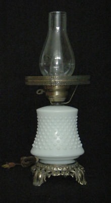 VINTAGE WHITE MILK GLASS HOBNAIL TABLE LAMP