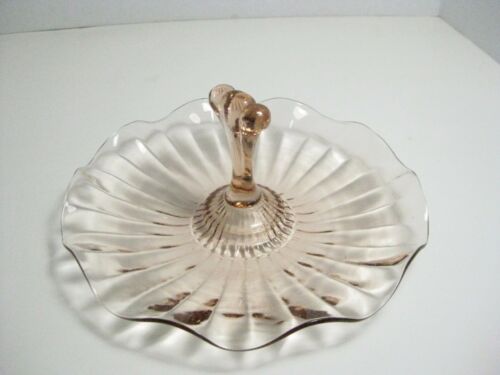 Title (ebay affiliate link): VINTAGE PINK DEPRESSION GLASS HANDLED SERVING PLATE / TIDBIT SANDWICH TRAY