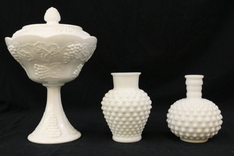 Vtg Indiana? Milk Glass Grapes Compote & 2 Bonus