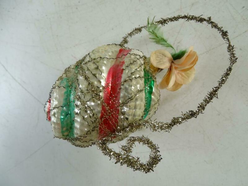 Antique German Figural Glass Christmas Tree Ornament Twisted Ball Silver Twine