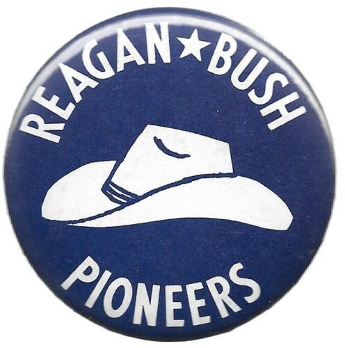 Title (ebay affiliate link): RONALD REAGAN AND BUSH PIONEERS COWBOY HAT POLITICAL CAMPAIGN PIN