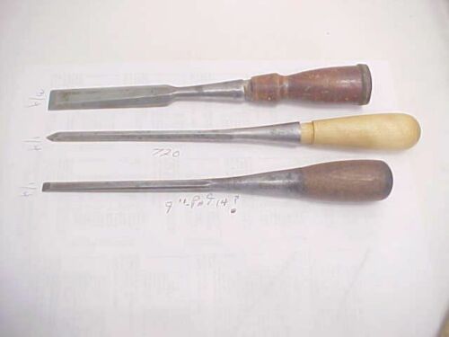 LOT OF 3 VINTAGE STANLEY SOCKET CHISELS 1/4 " 720 CHISEL US PAT 14 ? + 3/4 "