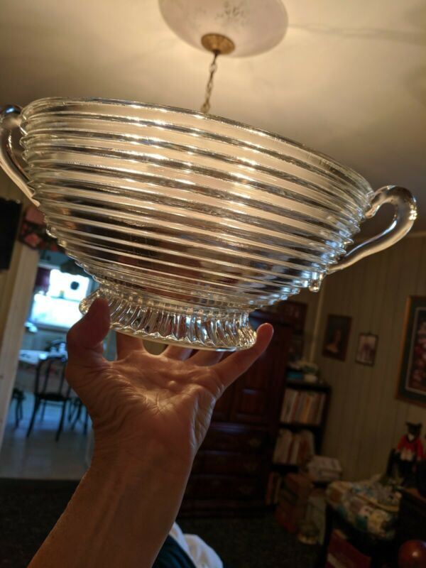 Title (ebay affiliate link): Large Depression Clear Glass Ribbed Footed Bowl With Handles 10" Beautiful Vtg B