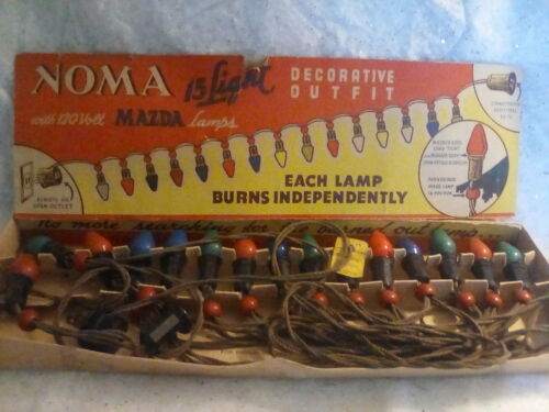 Vintage NOMA 15 LIGHT ELECTRIC CHRISTMAS SET c-7 bulbs cloth wire red beads