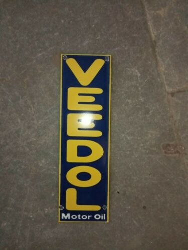 Porcelain Veedol Motor Oil Enamel Sign SIZE 10" x 3" Inch