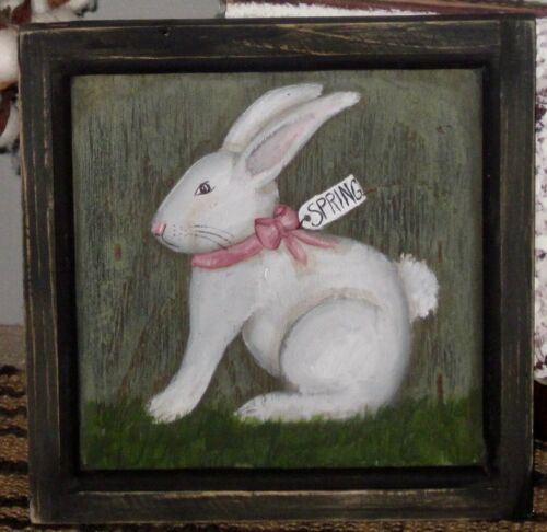 *~*PRIMITIVE*~* HP FOLK ART PRIM BUNNY *~* SPRING *~* SM. DOOR PANEL