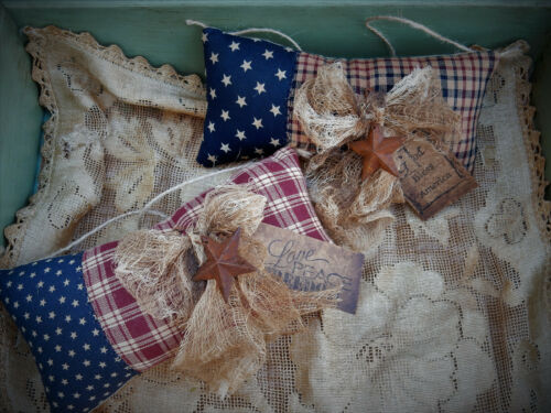 Title (ebay affiliate link): FoLk Art PrimiTive Americana gruNgy Flag Rusty Star Pillow Cupboard Knob Ornies