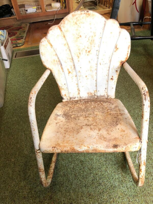 Title (ebay affiliate link): Child''s Metal Rocking Chair 1950''s Shell Back White VTG Retro Lawn Furniture