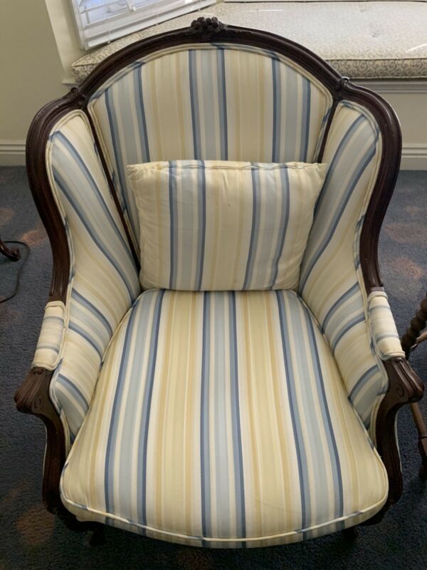 Title (ebay affiliate link): Vintage / Antique Butterfly Arm Chair with gorgeous carvings and new upholstery