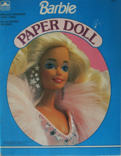 Title (ebay affiliate link): NEW UNCUT BARBIE PAPER DOLL ~ 1989 GOLDEN ~ FEATURING STAR STUDDED FASHIONS