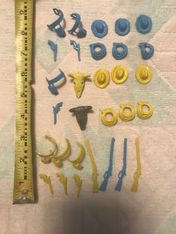 Vintage Plastic Misc Lot Guns, Holsters,Pistols,Hats, Steer Skull,Marx ? Lot 5